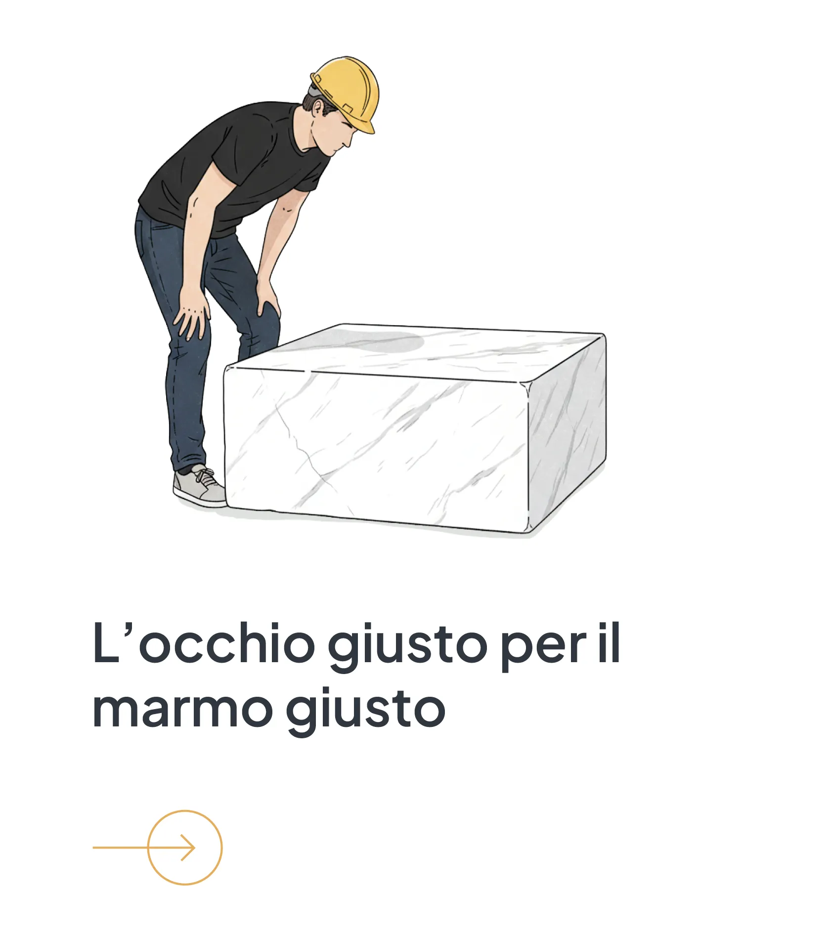 Niente giri, niente intermediari. Parli direttamente con chi è andato in cava a scegliere. Ti guidiamo nella decisione, capiamo le tue esigenze tecniche ed estetiche, e troviamo il marmo perfetto per il tuo progetto.