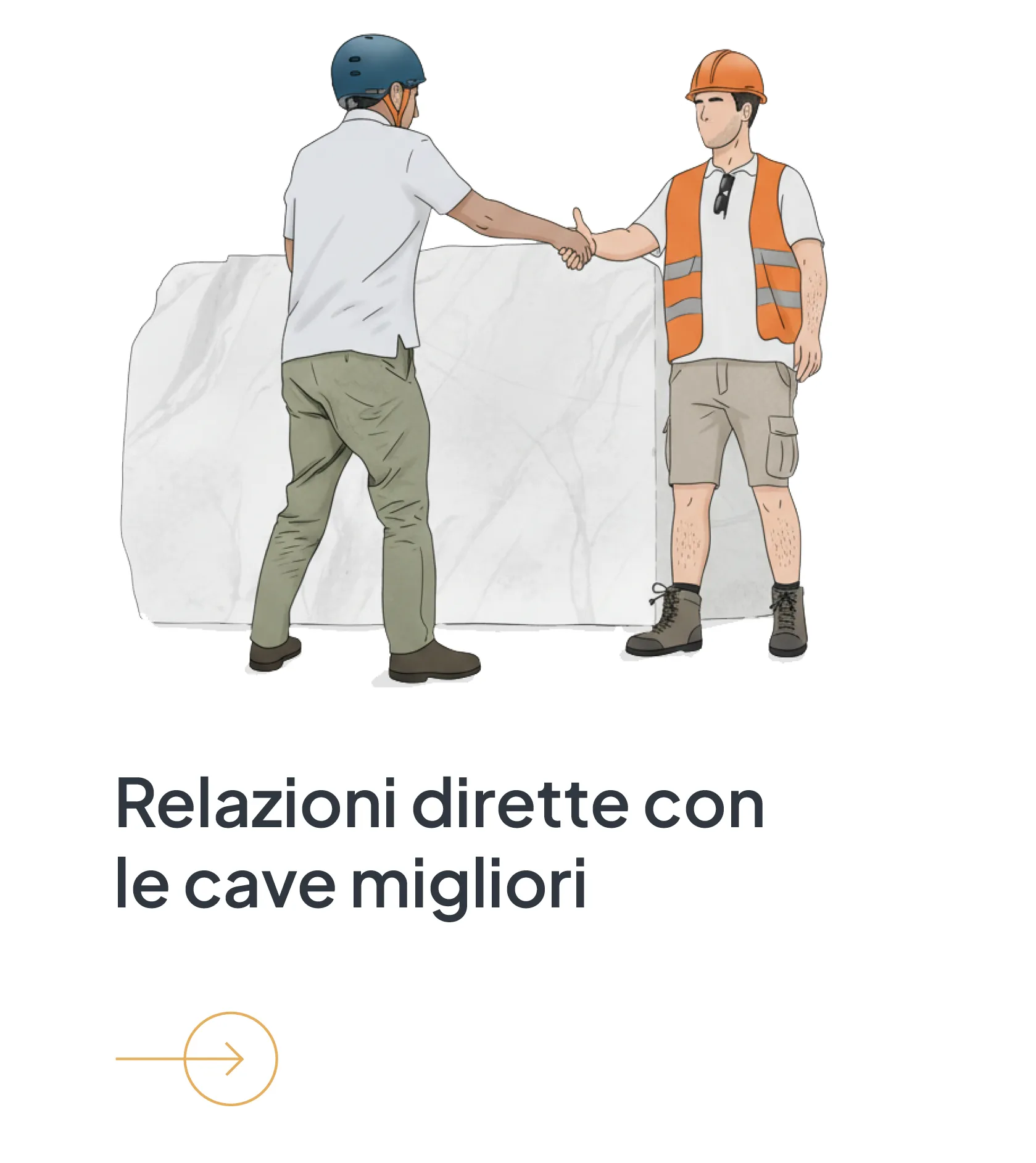 Decenni di rapporti ci aprono le porte delle cave più esclusive al mondo. Accesso privilegiato a materiali rari, condizioni vantaggiose, disponibilità in anteprima. Non compriamo da catalogo.